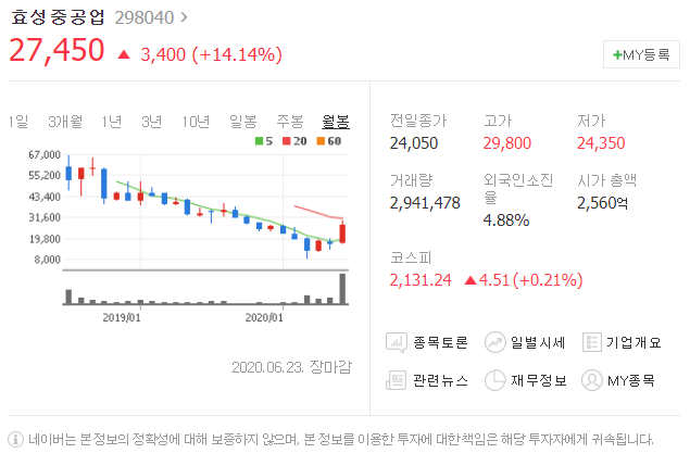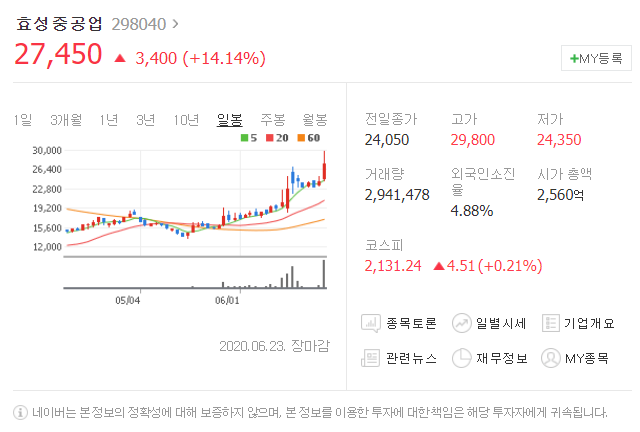 세번째는 효성중공업입니다. [ 298040 ]