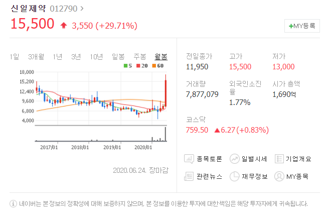 세번째는 신일제약입니다. [ 012790 ]