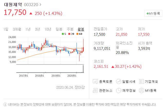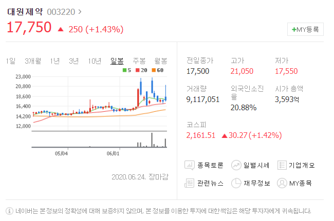 첫번째는 대원제약입니다. [ 003220 ]