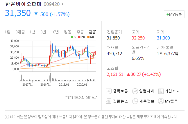 네번째는 한올바이오파마입니다. [ 009420 ]