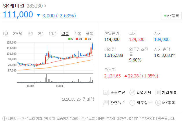 마찬가지로 SK바이오팜 계열사 중 하나이기에 상장소식이 있을 때마다 크게 영향을 보이기도 해요.