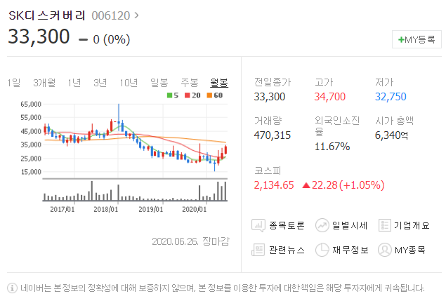 네번째는 sk디스커버리입니다. [ 006120 ]