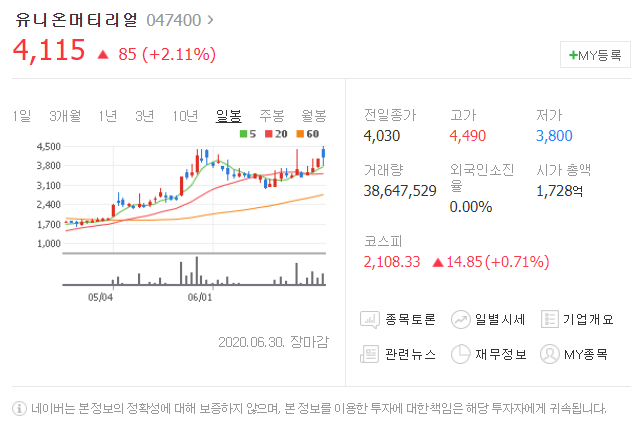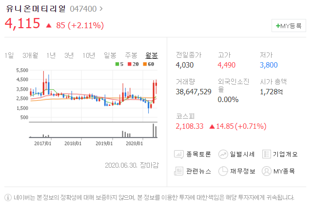세번째는 유니온머티리얼입니다. [ 047400 ]
