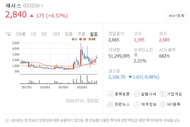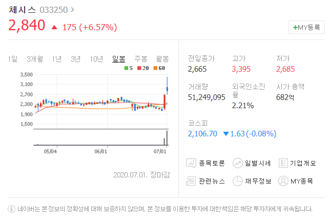 전일대비 175원 상승했으며, 7월 1일 2840원으로 마무리 되었네요.