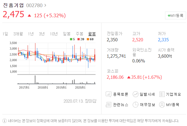 네번째는 진흥기업입니다. [ 002780 ]