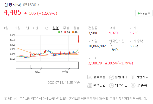 첫번째는 진양화학입니다. [ 051630 ]