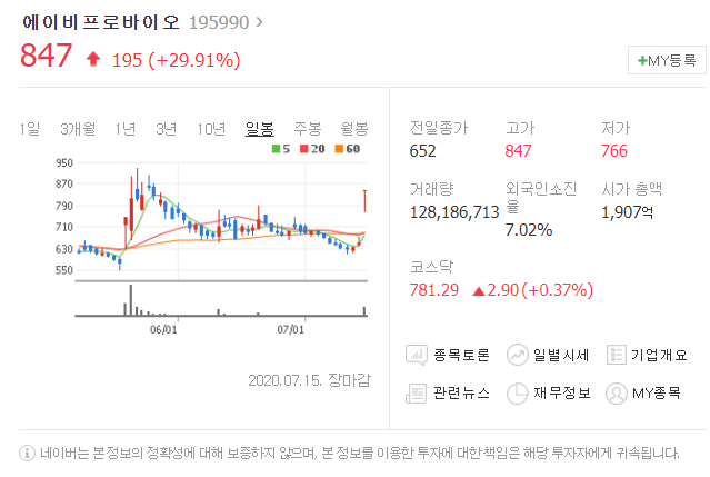 두번째는 에이비프로바이오입니다. [ 195990 ]