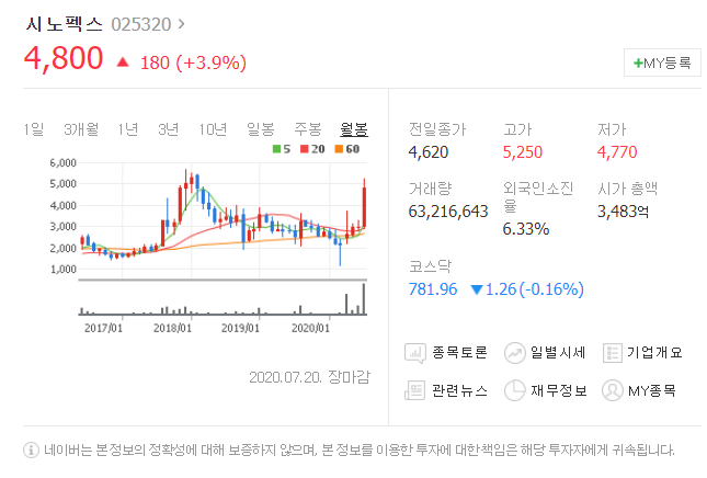 전일대비 180원 상승했으며, 7월 20일 4800원으로 마무리 되었네요.