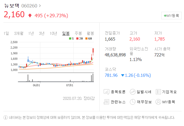 뉴보텍은 현재 관련주 중에서도 관심이 많이 쏠리고 있다는 느낌을 받고 있는데요.