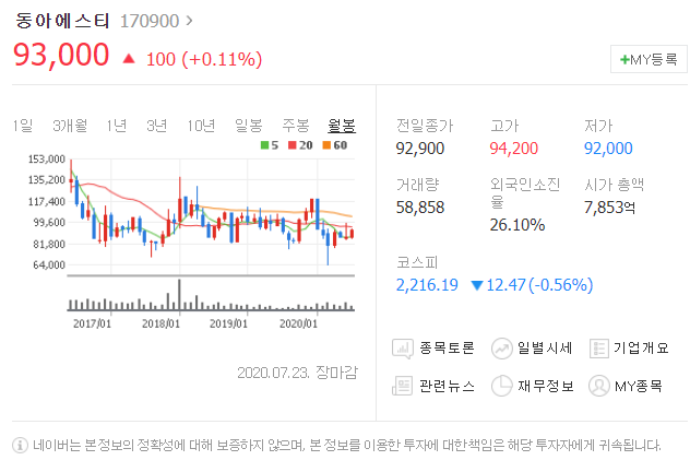 전일대비 100원 상승했으며, 7월 23일 93000원으로 마무리 되었네요.