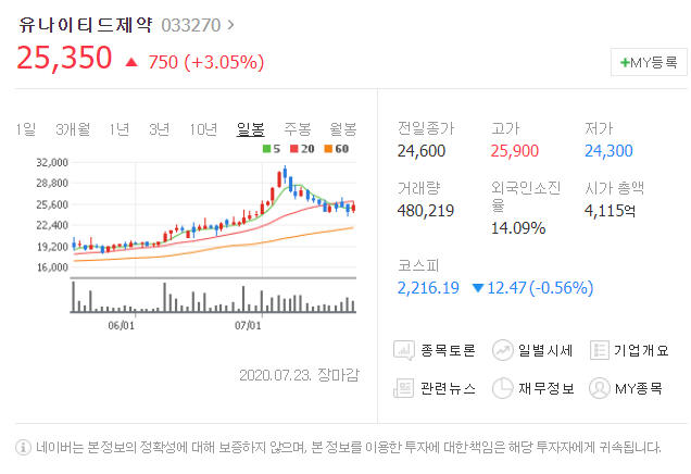 세번째는 유나이티드제약입니다. [ 033270 ]