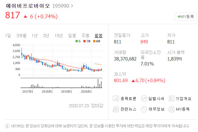 두번째는 에이비프로바이오입니다. [ 195990 ]