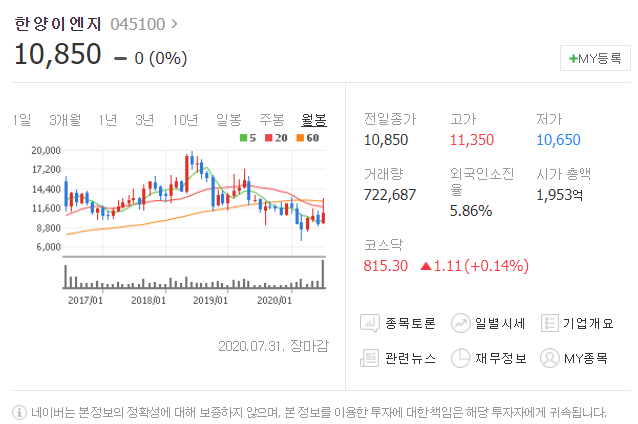 7월 31일 변동없으며, 7월 31일 10850원으로 마무리 되었네요.