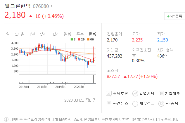 7월 31일보다 10원 상승했으며, 8월 3일 2180원으로 마무리 되었네요.