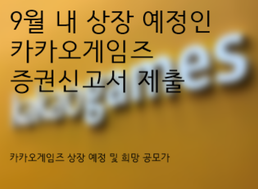9월 상장 예정 카카오게임즈 증권신고서 제출