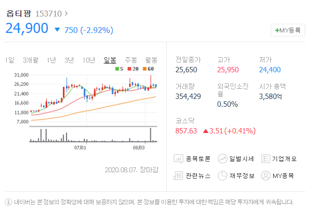 8월 7일 750원 하락했으며, 8월 7일 24900원으로 마무리 되었네요.