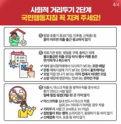 전국 사회적거리두기2단계 시행 내용