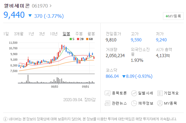 다섯번째는 엘비세미콘입니다. [ 061970 ]