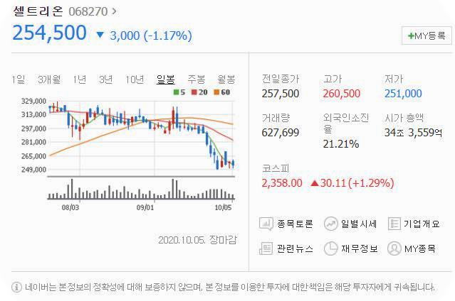 다섯번째는 셀트리온입니다. [068270]