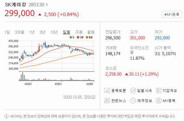 여섯번째는 SK케미칼입니다. [285130]