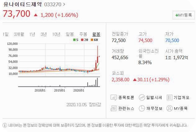 세번째는 유나이티드제약입니다. [033270]