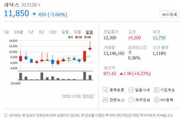 전일대비 450원 하락했으며, 10월 8일 11850원으로 마무리 되었네요.