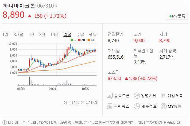 두번째는 하나마이크론입니다. [067310]