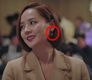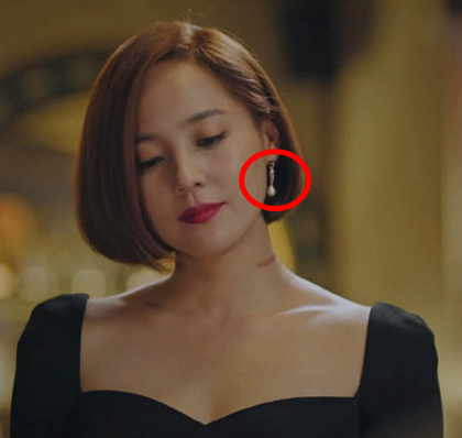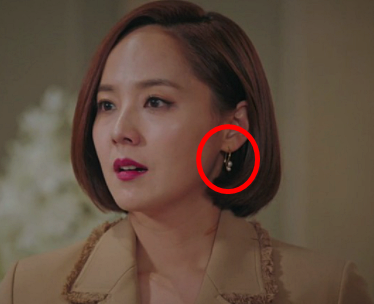 흑화되고 나서 점점 돋보이는 그녀의 패션. 블랙 드레스에 귀걸이로 포인트를 줬는데, 귀걸이가 눈에 들어오더라구요. 골드톤에 크리스탈과 진주가 세팅되어 있는데, 블랙드레스에 코디를 하니 우아하면서도 고급스러운 분위기가 느껴지더라구요. 크리스탈과 진주가 같이 있어 과하다 생각할 수도 있지만, 오히려 심플해서 부담스럽지 않고 오윤희처럼 심플한 코디에 연출하면 포인트로 작용할 것 같아요. 브랜드는 엘쁘랍니다.
