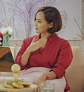 헤라펠리스 파티 이후 옷스타일이 바뀐 오윤희. 더 고급스러워지고 헤어스타일도 차분해지면서 분위기 자체가 많이 바뀌었죠. 다른 두 배우(천서진, 심수련)에 비하면 수수한 편이지만 전체적으로 많이 바뀌었는데요. 이 원피스가 눈에 쏙 들어오더라구요. 색감도 그렇지만 디자인이 너무 예뻣어요.