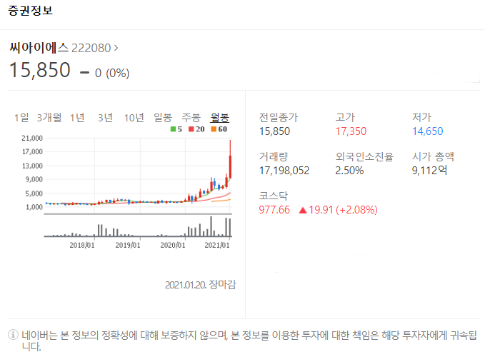 여섯번째는 씨아이에스입니다. [222080]