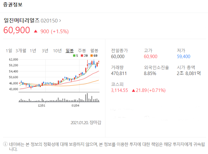 다섯번째는 일진머티리얼즈입니다. [020150]