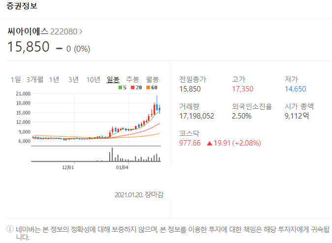 여섯번째는 씨아이에스입니다. [222080]