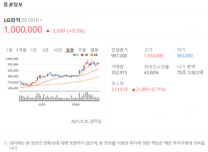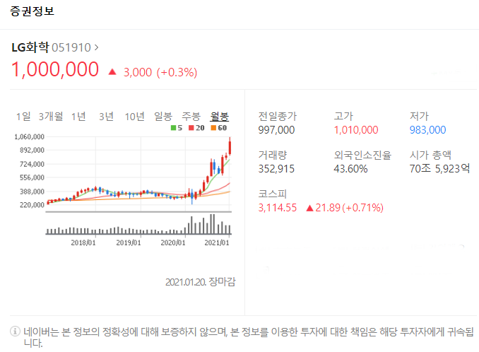 세번째는 LG화학입니다. [051910]