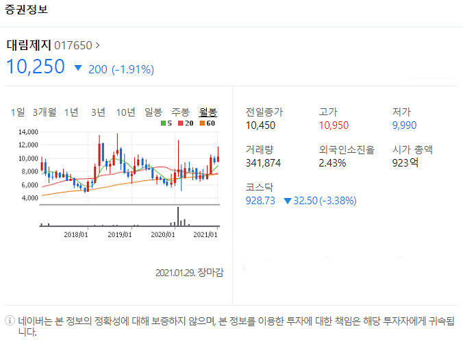 두번째는 대림제지입니다. [017650]