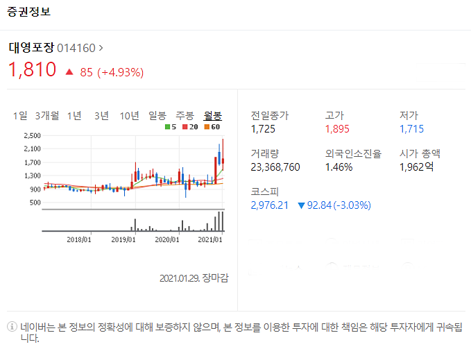 여섯번째는 대영포장입니다. [014160]
