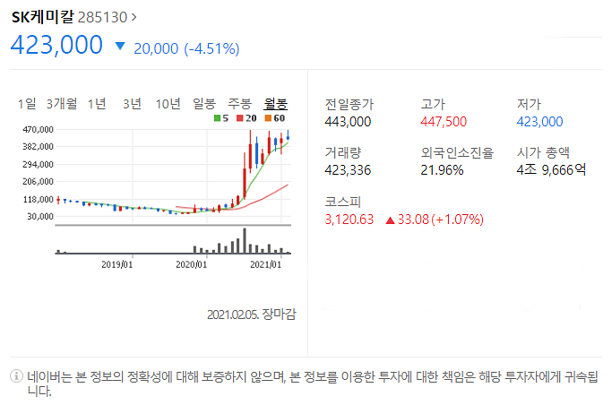 첫번째는 SK케미칼입니다. [285130]