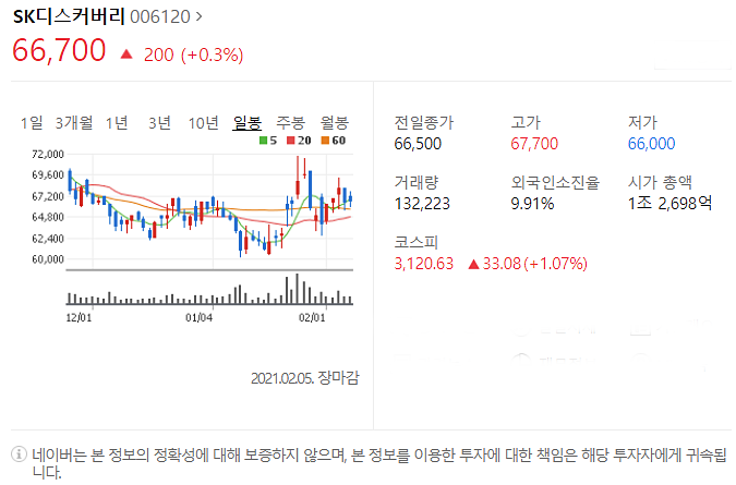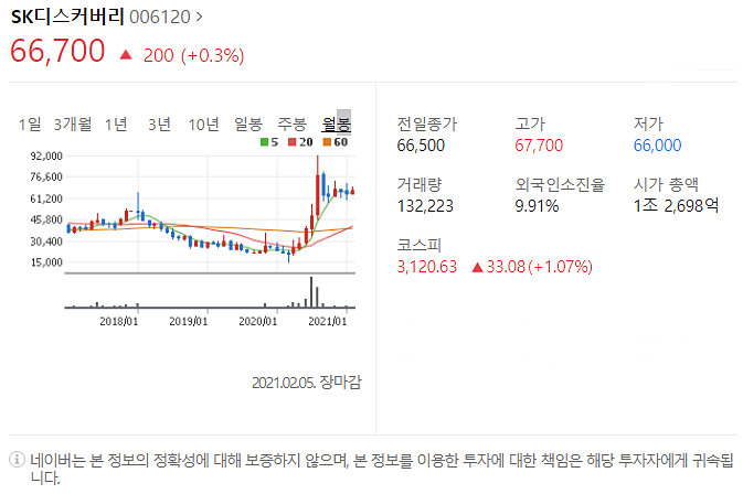 두번째는 SK디스커버리입니다. [006120]