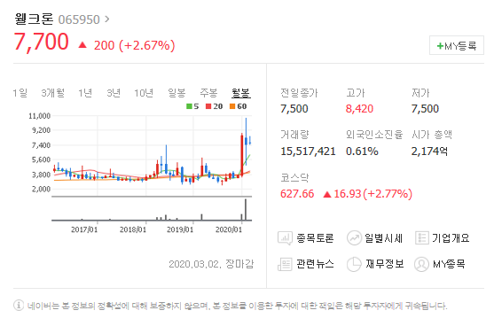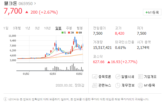 두번쨰는 웰크론입니다. [ 065950 ]