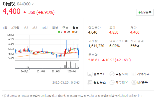 세번째는 이글벳입니다. [ 044960 ]