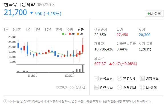 네번쨰는 한국유니온제약입니다. [ 080720 ]