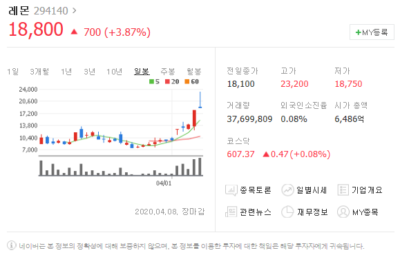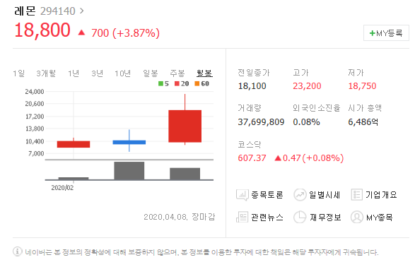 전일대비 700원 상승했으며, 4월 8일 18800원으로 마무리되었네요.