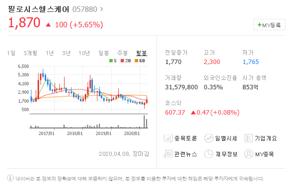 두번째는 필로시스헬스케어입니다. [ 057880 ]