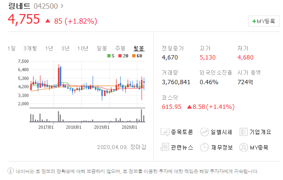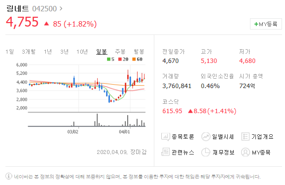 전일대비 85원 상승했으며, 4월 9일 4755원으로 마무리 되었네요.