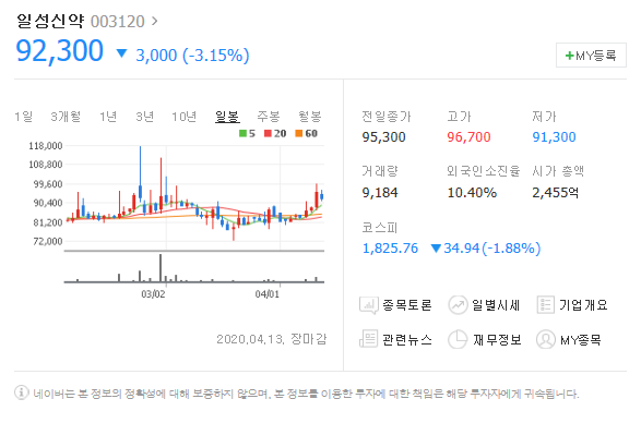 네번째는 일성신약입니다. [ 003120 ]