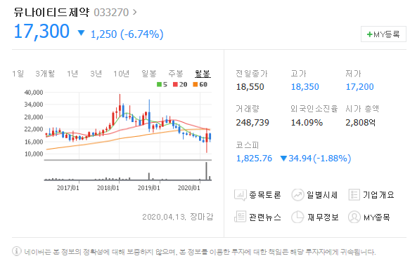 세번째는 유나이티드제약입니다. [ 033270 ]