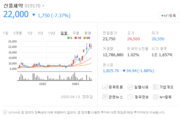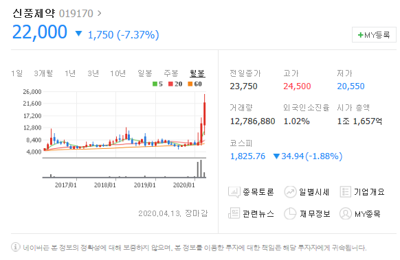 클로로퀸관련주, 신풍제약