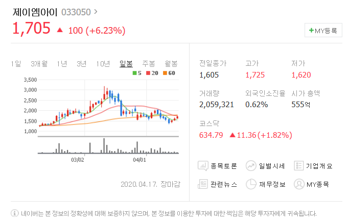 세번째는 제이엠아이입니다. [ 033050 ]