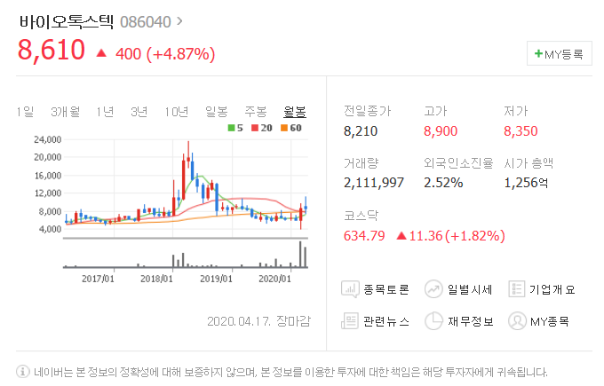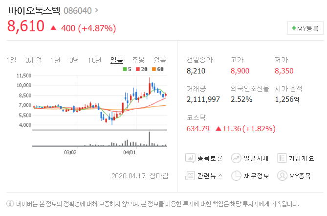 두번째는 바이오톡스텍입니다. [ 086040 ]