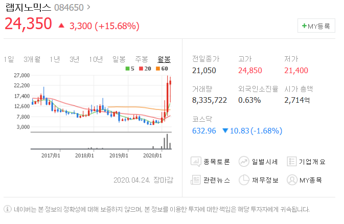두번째는 랩지노믹스입니다. [ 084650 ]