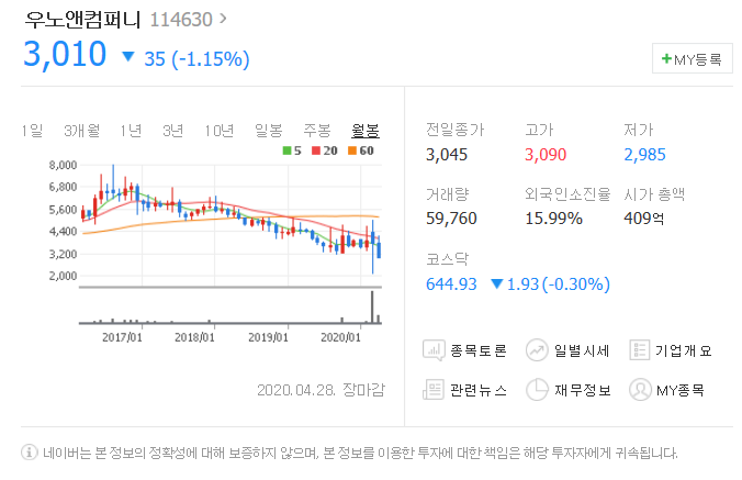 세번째는 우노앤컴퍼니입니다. [ 114630 ]